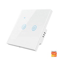 Para Tuya Wifi Smart Switch 2Gang Controlador de iluminación de pared de vidrio Estándar DE LA UE/Reino Unido Sin cable neutro 10A Max. Compatible Smart Life